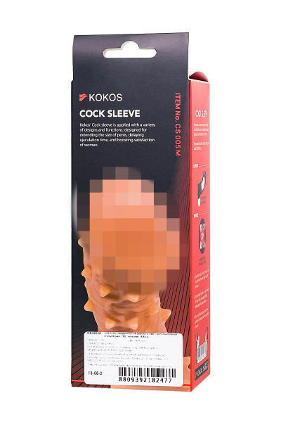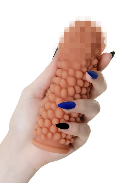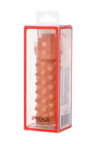 Насадка KOKOS реалистичная с дополнительной стимуляцией, TPE, телесная, 15.6 см с мягкими шипами