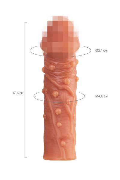 Насадка KOKOS реалистичная с дополнительной стимуляцией, TPE,телесная, 17,6 см, Ø 4,6