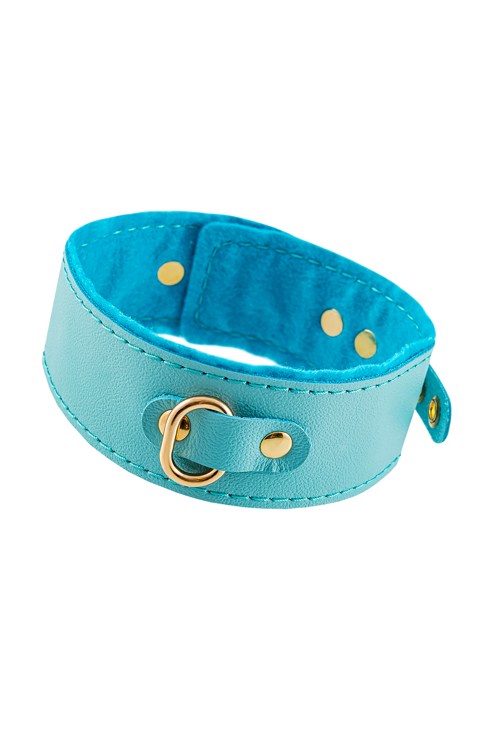 Ошейник Pecado BDSM, двуслойный с подкладкой из фетра и прошивкой, натуральная кожа, голубой